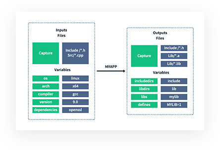 Conan 将 C/C++ 组件不通的输入进行了标准 化输出,抹平组件构建环境差异性,使得C/C++ 组件模块化,提高组件在社区或企业中快速分 享,避免重复造轮子,降低企业成本。