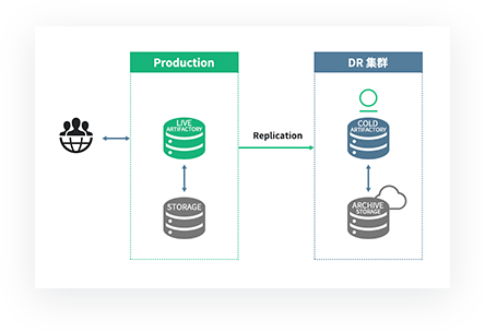灾难备份是通过在一个主集群服务和一个相 应的备份服务之间配置完整的系统复制来实 现的, 支持应用级别 replication 复制进行 备份粒度控制,也支持集群整体进行定期备 份,当主服务因任何原因不可用时,可以快 速恢复一套环境,切换用户到备份服务集 群,提高企业基础数据可用性。
