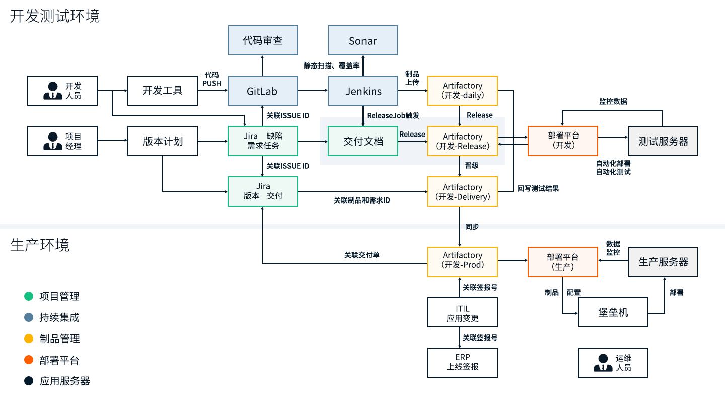 收集devops工具相关结果作为元数据,如jiraissue,构建信息,单元测试等,作为质量关卡,自动化晋级制品快速流转