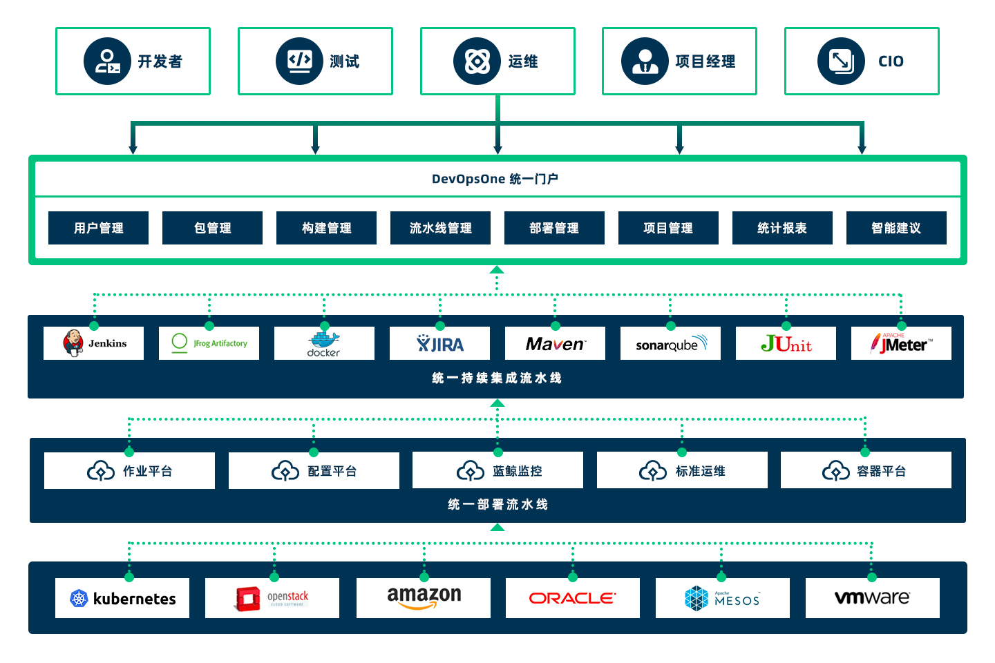开发测试环境部署管理分散,每个团队有各自的规范,甚至独立的持续集成服务器,技术支持效率越来越低,成本越来越高,
