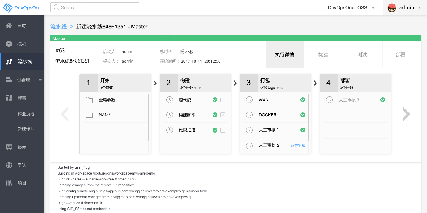 Polaris 提供了可视化CI&CD编排流水线能力,内置了常 见流水线原子任务,大幅降低了使用难度,进一步降低 DevOps 落地的门槛。